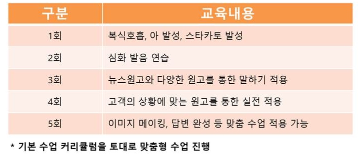 ※ 항공사 면접 준비는 최대 3회 수업, 보이스 트레이닝은 최대 5회 수업 제안